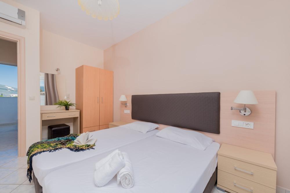 Τα Δίκλινα δωμάτια μεγέθους 32 τ.μ, φιλοξενούν 1/2 άτομα με δύο μονά κρεβάτια και προσφέρουν A / C, επίπεδη TV, ψυγείο, θυρίδα ασφαλείας, ντους, πιστολάκι μαλλιών, μπαλκόνι με θέα στην πισίνα, εξοπλισμένη κουζίνα, βραστήρα και καθημερινή καθαριότητα.